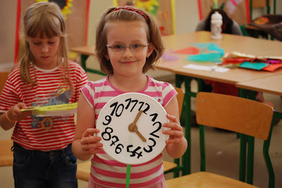| Oleńka z zegarem, który powiesi w swoim pokoiku |